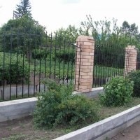 Заборы из профнастила с кирпичными столбами